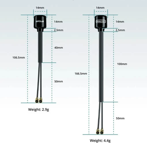 Cette antenne est disponible en plusieurs versions : 5,8 GHz (90 mm ou 150 mm), 2,4/5,8 GHz (155 mm). À vous de choisir !