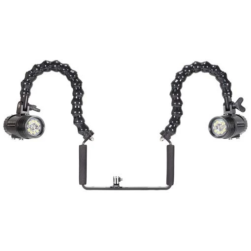 Le pack comprend une platine de plongée, des bras flexibles et deux lampes vidéo à rétrodiffusion MW-4300. Un faisceau large avec 4300 lumens par phare ! Un mode rouge et mode nuit sont disponibles et s’adaptent à votre environnement. La température est de 5000k pour le faisceau macro et 6000k pour le grand angle.