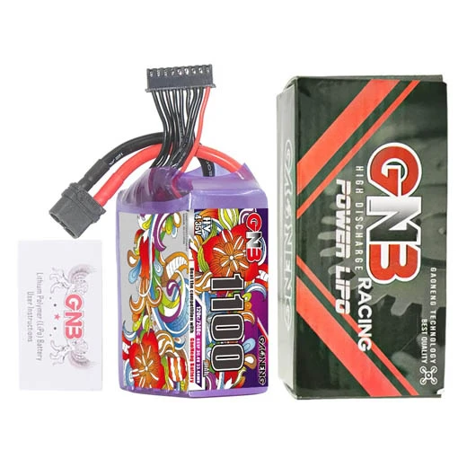 Optez pour cette batterie LiHV pour vos prochains vols ! De dimensions de 50 x 35 x 77 mm avec un poids de 227 g, cette LiHV GaoNeng GNB dispose d’une tension de 8S et d’une capacité de 1 100 mAh. Elle comprend un taux de charge de 1 à 5C et un taux de décharge continu de 120C et 240C en rafale. Cette batterie GaoNeng GNB possède un connecteur XT60.