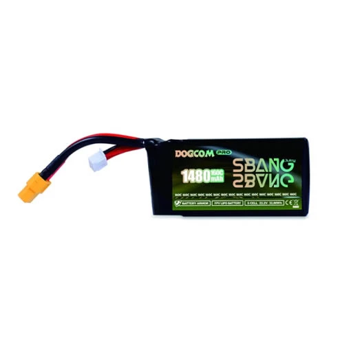 Cette batterie LiPo Dogcom édition SBANG est idéale pour la pratique du SBANG. Elle permet de réaliser des acrobaties avec énergie et vivacité. La batterie dispose d’un taux de décharge de 160C (320C en pic), d’une tension de 6S et d’une capacité de 1480mAh. Elle est dotée d’un connecteur XT60 et pèse environ 247 g.