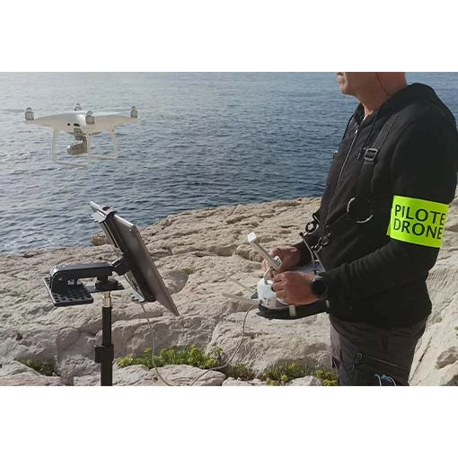 Vous pouvez également utiliser le brassard télépilote fluo à la place du gilet ou en complément. Vous serez aussi facilement identifiable grâce à sa couleur fluo. La taille permet d’être confortable même lorsqu’il est installé sur des vêtements épais, vous ne serrez pas serré. Il se positionne sur votre bras et se ferme l’aide d’une bande velcro.