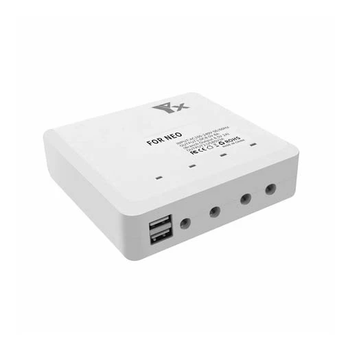 Le chargeur 6en1 YX vous permettra de charger jusqu’à quatre batteries DJI Neo et une radiocommande. Ce chargeur comprend en effet de quatre ports de connexion de batterie de 13,2 V (4 A) et de deux ports USB de sortie de 5 V (3 A). Il ne met que 45 minutes pour recharger vos quatre batteries. Vous pourrez également recharger votre smartphone via ce connecteur USB. Ce chargeur peut être alimenté par une source AC de 100 à 240 V 50/60 Hz via son adaptateur secteur fourni.