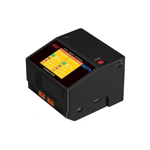 Le chargeur HOTA S6 est doté d’une double entrée AC/DC, de deux sorties XT60 avec prises d’équilibrage et d’un écran rétroéclairé. De dimensions de 116 x 116 x 85 mm avec un poids de 800 g, ce chargeur léger et compact pourra vous suivre sur le terrain. Vous pourrez ainsi charger et décharge jusqu’à deux batteries simultanément, mais aussi tous vos appareils (ordinateur, smartphone, tablette, drone, etc.). Ce chargeur S6 Duo est d’ailleurs compatible avec les batteries LiHV, LiPo, LiFe, Li-ion et Lixx de 1 à 6S, les NiZn, NiCd, NiMH de 1 à 16S, les batteries intelligentes de 1 à 6S, les batteries au plomb de 1 à 12S et les Eneloop de 1 à 16S.