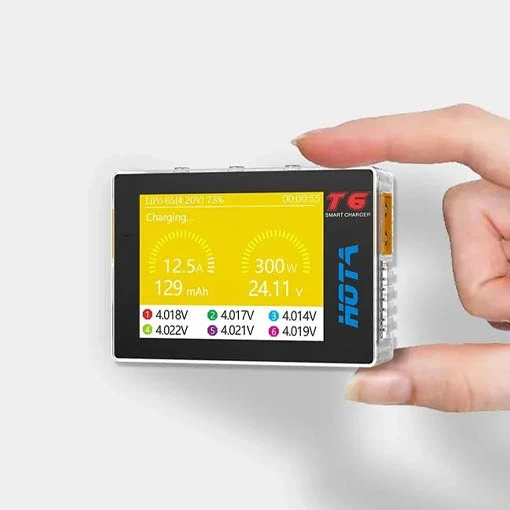 Ce chargeur HOTA T6 comprend de plus un écran IPS LCD de 2,4 pouces, assurant un affichage clair de l’état de vos batteries et de leur charge. Il intègre également un système de protection complet contre les courts-circuits, les surchauffes, la sous-tension, le sur-ampérage et bien plus encore ! Ce chargeur bénéficie aussi d’un ventilateur innovant afin de dissiper efficacement la chaleur pour une meilleure durabilité.
