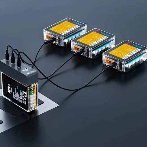 Le chargeur HOTA T6 est un chargeur ultra-compact et léger, facile à emporter partout avec vous. Il dispose d’une double entrée DC et PD, avec une puissance de charge de DC XT60 à 300 W et un courant de charge max. de 15 A. Grâce à l’entrée USB-C PD à 90 W, rechargez rapidement vos batteries. Fiable et robuste, ce chargeur HOTA prend en charge les batteries LiHV, LiPo, LiFe et Lixx de 1 à 6S, les batteries au plomb de 1 à 12S, les batteries intelligentes de 1 à 6S, les Eneloop, NiZn, NiCd et NiMH de 1 à 14S.
