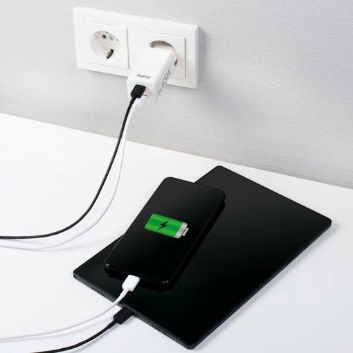 Chargez rapidement votre smartphone ou les batteries de votre appareil photo ou drone rapidement grâce à ce mini chargeur ultra rapide Hama 65 W. Il vous garantira une charge à 60% en seulement 30 minutes et dispose d’une compatibilité maximale grâce à la technologie Power-Delivery et Qualcomm® Quick Charge™ 3.0. Doté de deux ports USB (un USB type C et un USB type A).
