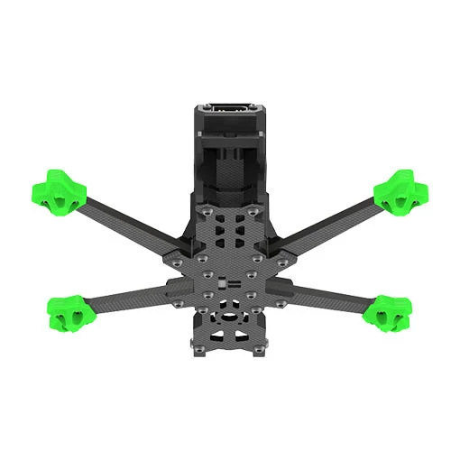 Le frame dispose d’assez de place à l’arrière dans le but d’accueillir un DJI O3 Air Unit. Un support pour l’antenne d’origine du VTx et également fourni. Le châssis possède des trous de montage VTx de 25.5 × 25.5 mm, stack de 20 × 20 mm et moteurs de 12 × 12 mm. Il pèse environ 163 g.