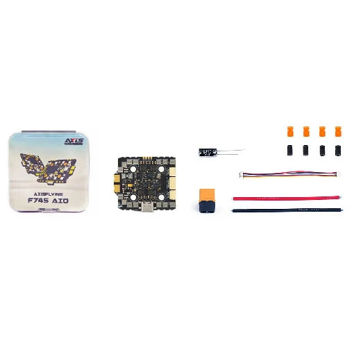 Le contrôleur de vol AIO AxisFlying Argus F745 40A vous offrira d’excellentes performances de vol. Idéal pour les sets up FPV compacts, cette AIO AxisFlying mesure seulement 38 x 45 x 7 mm pour un poids unique de 14,4 g. Elle réunit un processeur STM32F745, un baromètre, un gyroscope ICM-42688-P, une blackbox de 32 Mb, 8 UARTS et un double BEC (5 V, 2 A ; 12 V, 2 A).