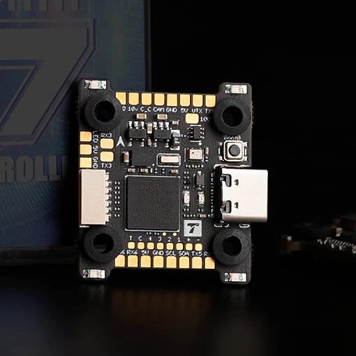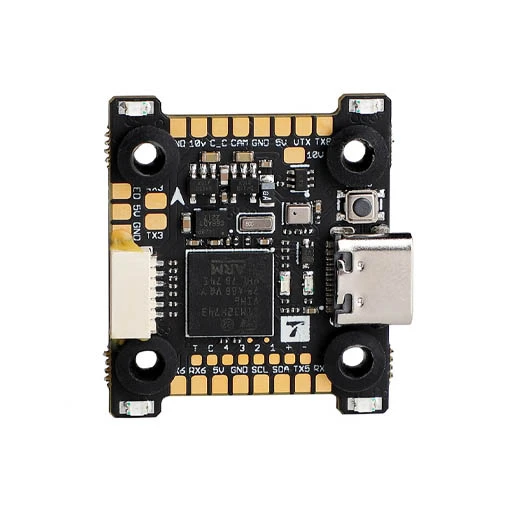 Le contrôleur de vol T-Motor H7 Mini est doté d’un processeur STM32H743, d’un gyroscope ICM42688P, d’une Blackbox de 16 mB, d’un double BEC 5V/2A et 10V/1,5A et de 7 UARTS. Cette carte de vol pourra être alimentée par une batterie LiPo de 3 à 6S. Plusieurs trous de montage de 20 x 20 mm sont présents sur la FC pour faciliter son installation sur votre châssis.