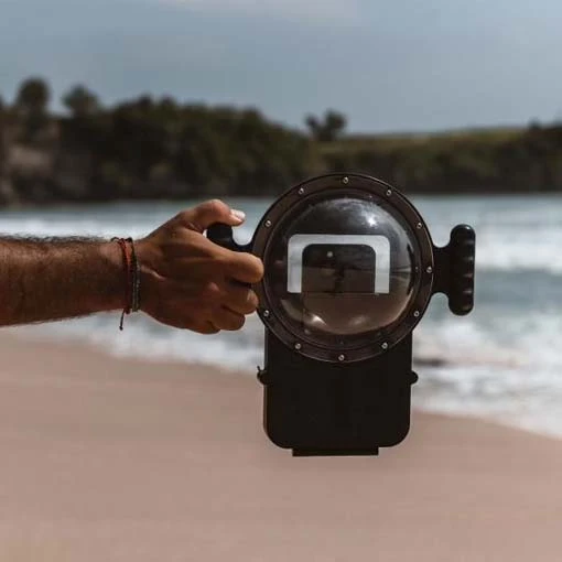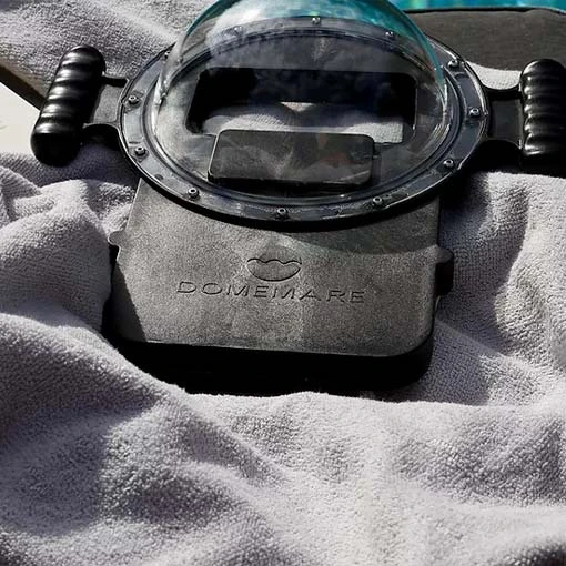 Le dôme étanche Domemare est conçu spécialement pour votre smartphone. Il est l’accessoire indispensable pour réaliser des photos ou vidéos mi-air, mi-eau. Avec une demi sphère en verre, il vous sera possible de capturer des images parfaitement cadrées grâce à la ligne de flottaison. La membrane tactile permet de garder le contrôle sur votre appareil. Vous aurez toujours accès aux boutons de contrôle et au tactile de votre téléphone.