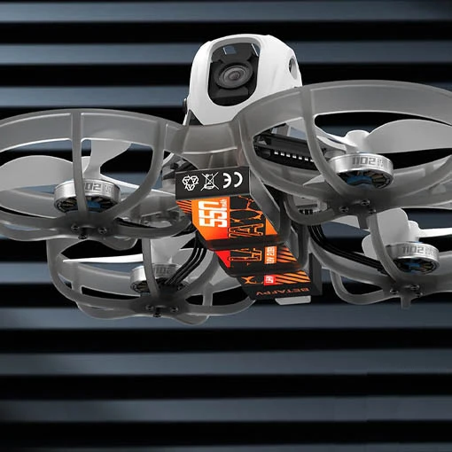 Le drone Meteor75 Pro est un tinywhoop optimisé pour accueillir le DJI O4 Air Unit. Avec un empattement de 80,8 mm et un poids de seulement 37,20 g, ce micro drone est idéal pour vos vols indoor et pour débuter en FPV. Il est particulièrement facile à piloter. Doté du VTx DJI O4 Air Unit, ce drone BetaFPV assure un retour vidéo fluide en 1 080p 100 ips avec une latence de 20 ms et une portée de 6 km (CE). Avec, vous pourrez aussi créer de sublimes prises de vue en 4K 60 ips et bénéficier du profil de couleurs D-Log M 10 bits pour un rendu éclatant et vibrant. Le Meteor75 Pro est de plus équipé d’un cam plate d’absorption des chocs, évitant ainsi les effets Jello.