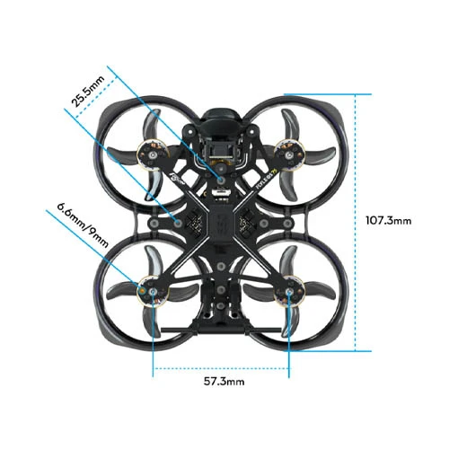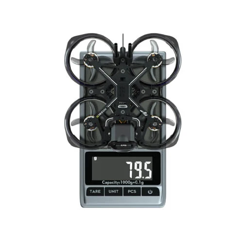Le FlyLens 75 comprend un compartiment de batterie à dégagement rapide pour plus de confort. Il dispose d’une carte de vol AIO Goku Versatile F405 2S 12A, de moteurs ROBO 1003 de 14 8200 Kv couplés à des hélices quadripales 1609 shaft 1,5 mm. Grâce à sa structure d’hélices à poussée inversée, vous pourrez profiter d’une meilleure endurance et d’une plus grande stabilité. Pour l’alimenter, utilisez une batterie LiPo de 2S (non fournie) via son connecteur XT30.