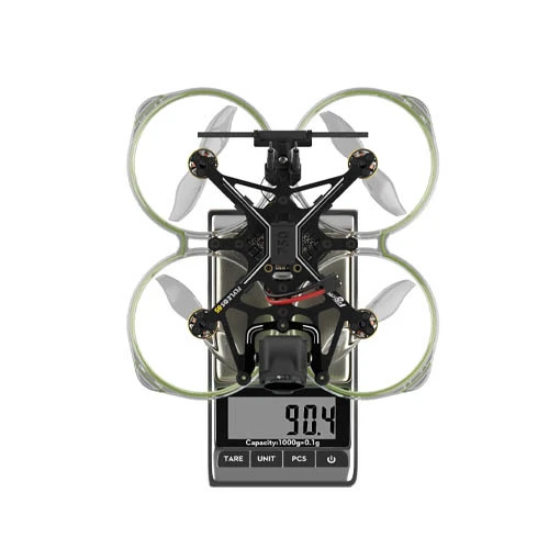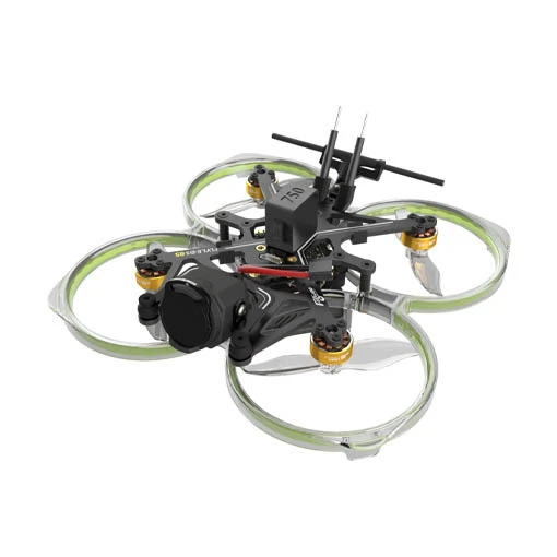 Le Flylens 85 comprend un châssis en fibre de carbone robuste avec une protection d’hélices moulée par injection pour plus de sécurité. Grâce à sa structure d’hélices à poussée inversée, bénéficiez de meilleures endurance et stabilité. Cette structure assurera aussi la réduction du bruit émis et facilitera le réglage de la position du centre de votre batterie. Ce drone dispose de LED pour gagner en visibilité dans les environnements peu éclairés. Vous pourrez ajouter une caméra d’action telle que l’Insta360 GO3, la Runcam Thumb, etc. Utilisez une LiPo de 2S via son connecteur XT30 pour l’alimenter.