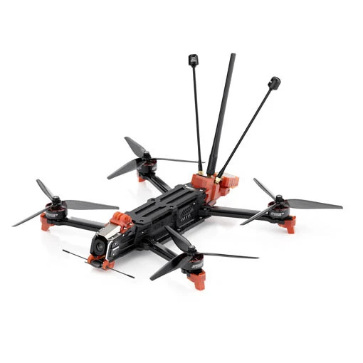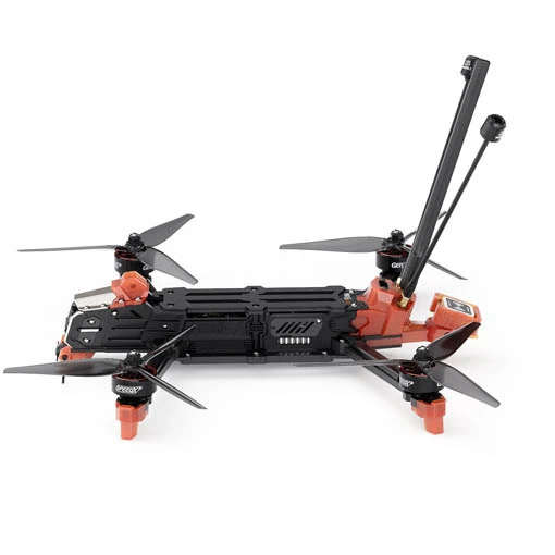 Avec un empattement de 336 mm et un poids de 750 g, ce qua garantit des performances de vol uniques avec une vitesse élevée, en particulier en basse altitude. Sa structure a été renforcée avec un centre de gravité optimisé et une protection de caméra en aluminium aérospatial 7075. Le MOZ7 V2 permet des prises de vue dégagées sans hélice. Il comprend une carte de vol TAKER H743 BT avec double gyroscope, un ESC 4en1 BL32 50A, des moteurs SPEEDX2 2809 de 1 450Kv V1.1 couplés à des hélices HQProp tripales 7537. Ce quad dispose également d’un GPS GEP-M1025 pour un positionnement plus précis. Pour l’alimenter, utilisez une LiPo ou Li-ion de 6S (non fournie via son connecteur XT60E-M.