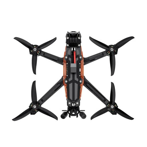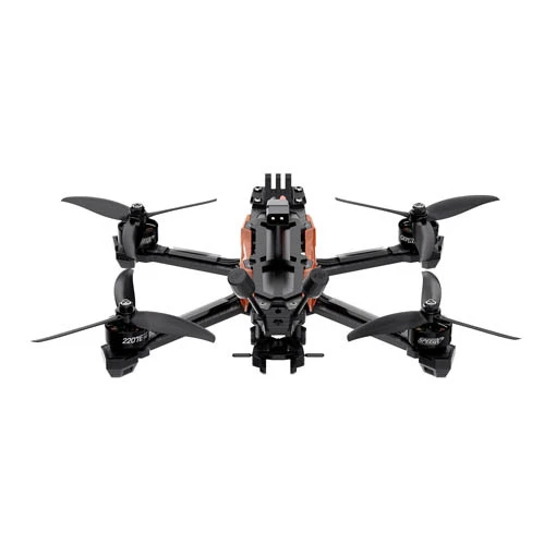 Le drone GEPRC Vapor-D5 vous assurera de belles performances. Avec un empattement de 230 mm et un poids de 428 g, ce drone GEPRC intègre le système de transmission DJI O4 Air Unit Pro, offrant un retour vidéo jusqu’en 1 080p 100 ips avec une portée de 8 km (CE) et une latence de 15 ms. Avec, vous pourrez également créer des prises de vue stabilisées en 4K 120 ips avec un FOV de 155° grâce à son capteur CMOS 1/1,3″ et son système de stabilisation RockSteady 3.0+. Ce VTx DJI prend de plus en charge le profil de couleurs D-Log M 10 bits pour un rendu image aux couleurs incroyables. Vous pourrez même y ajouter une caméra d’action grâce au support GoPro fourni.
