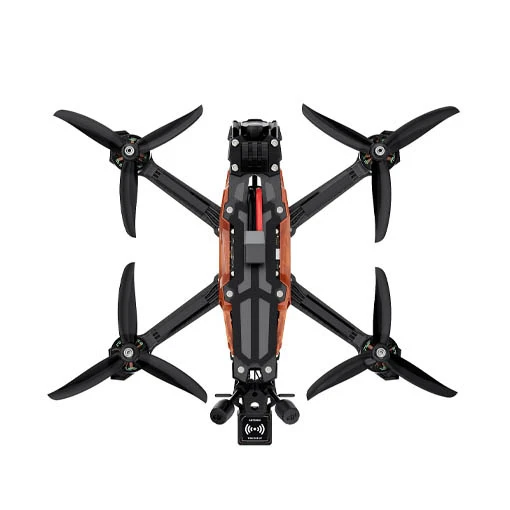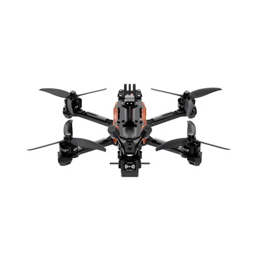 Le Vapor-X5 comprend une carte de vol GEPRC F722 HD V2, un ESC 4en1 TAKER H60 BLS 60A, des moteurs GEPRC SPEEDX2 2207E de 1960 Kv couplés à des hélices Gemfan tripales Gemfan 5136. Cette configuration lui confère des performances de vol puissantes. Sa conception vous permettra aussi de retirer et de remonter facilement ses bras. Il possède un GPS GEP-M10 pour un positionnement précis. Pour l’alimenter, utilisez une LiPo de 6S (non fournie) via connecteur XT60.