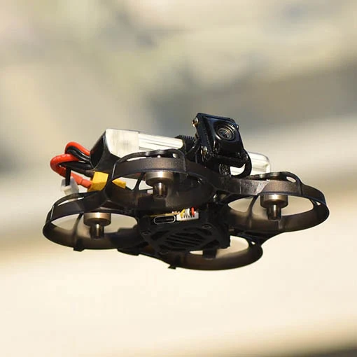 Le AcroBee75 comprend également une carte de vol BeeBrain G474 avec ELRS 2,4GHz, des moteurs Flow 0804 de 14 000Kv couplés à des hélices Azi tripales 40mm. Grâce à sa configuration et son poids de seulement 44 g, ce micro drone offre un contrôle, une fiabilité et une réactivité exceptionnels. Son récepteur interne à double antenne avec oscillateur à cristal TCXO assure de plus une connexion plus sûre et une portée de réception plus étendue. Le AcroBee75 fonctionne avec une batterie LiPo de 2S (non fournie), à connecter à son port XT30.