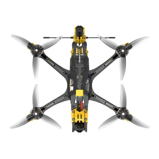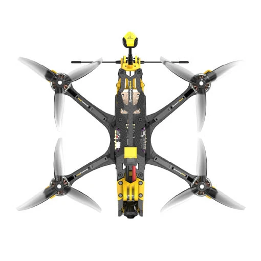Le Master5 V2 à la géométrie X large est très polyvalent, mais sera particulièrement adapté pour les vols cinematic, long range et freestyle. Avec un empattement de 226 mm avec un poids de 420 g, ce quad Speedybee est doté d’un transmetteur vidéo DJI O3 Air Unit offrant un retour vidéo en temps réel fluide jusqu’à 10 km (FCC). Il vous permettra d’enregistrer des vidéos en 4K 120 fps avec un FOV de 130°. Vous pourrez d’ailleurs ajouter des filtres de votre choix. Ce drone BNF dispose également d’une protection de caméra en alliage aluminium 7075-T pour plus de sécurité.