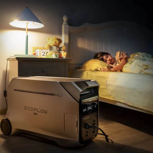 La station électrique portable Delta Pro 3 d’EcoFlow est une solution d’alimentation fiable. Elle possède 4000 W de puissance de sortie pour alimenter presque tous vos appareils électroménagers. Cette station est très silencieuse, avec seulement 30 dB (en dessous de 2000W), grâce à sa technologie X-Quiet. La Delta Pro 3 dispose de multiples méthodes de recharge (murale CA, avec générateur de gaz, station de recharge pour véhicule électrique, etc.) avec des options de recharge combinées.