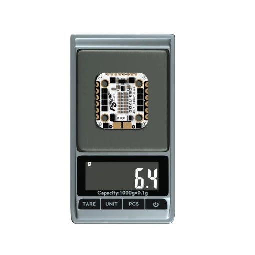 L’ESC 4en1 Flywoo Goku G45M 45A vous assure puissance et performance pour votre setup FPV. Léger (6,4 g) et compact, il s’installe en toute facilité sur votre châssis grâce à ses trous de montage en 20 x 20 mm. Cet ESC supporte un ampérage continu de 45A et jusqu’à 50A en pic de 10 secondes environ. Il est doté d’un firmware BLHeli_32 et évolue sous les protocoles DShot150/300/600/1200, OneShot42/123 et MultiShot. Par ailleurs, il possède un taux de rafraîchissement PWM entre 24 et 148K et s’alimente grâce à une batterie LiPo de 2 à 6S (non fournie). Sa conception PCB à 6 couches permet de réduire la chaleur.