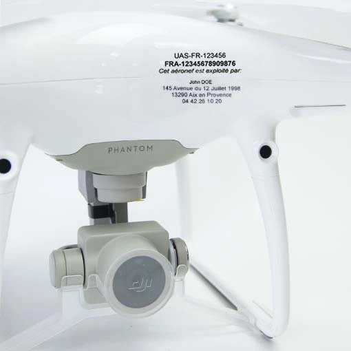 Afin d’être en règle avec la législation drone Loisir/Pro en cours, La Caméra Embarquée vous propose une étiquette d’identification autocollante de 30 x 60 mm. Elle pourra être collée sur tous les aéronefs télépilotés. pour des drones comme le Mavic 2, Phantom Series, Inspire Series, Matrice Series… L’étiquette est transparente avec écriture à l’encre noire et s’adaptera aux formes arrondies. Ces étiquettes adhésives laminées ont été développées pour résister aux températures extrêmes. Elles résistent également aux produits chimiques, à l’abrasion, à la lumière du soleil ainsi qu’à l’eau et sont donc adaptées pour un usage sur drone. Cette étiquette doit être apposée en permanence, de façon visible sur l’aéronef. L’inscription doit être visible à une distance de 30 centimètres, à l’œil nu. Elle peut être collée dans le logement batterie et doit être accessible après un démontage simple (ne nécessitant pas d’outillage).
