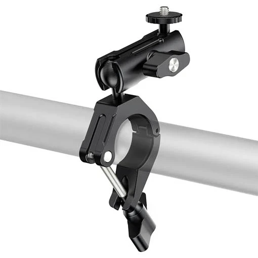 Cette fixation Ulanzi convient aux guidons de vélo, moto, etc. disposant d’un diamètre entre 8 mm et 35 mm. Elle est équipée d’un cercle en silicone afin de ne pas abîmer ou rayer votre matériel et de maintenir votre caméra stable et en place. Cette fixation dispose d’une vis 1/4″ idéale pour accueillir des caméras d’action comme des Insta360, mais elle est également livrée avec une fixation type GoPro pour davantage de compatibilité.