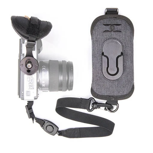 Cette fixation G3 Strapshot de Cotton Carrier vous permet d’avoir votre appareil photo à portée de main à tout moment. Elle vient se fixer sur une bandoulière ou une bretelle de sac à dos. Idéale pour capturer l’instant présent, elle intègre un système de dégagement rapide. Pour une sécurité maximale, elle intègre une attache de secours à accrocher sur votre appareil. La fixation est livrée avec une dragonne à sangle Velcro robuste, ainsi qu’une housse de pluie pour une utilisation optimale.