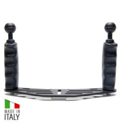 Cette platine de plongée est fabriquée en Italie par CarbonArm. Elle est entièrement usinée dans de l’aluminium anodisé, traité anticorrosion. Ses deux poignées sont très ergonomiques, elles disposent d’un revêtement PVC pour assurer un bon grip. Les deux rotules de 25mm de diamètre permettront de supporter un éclairage optionnel. L’adaptateur GoPro est inclus.