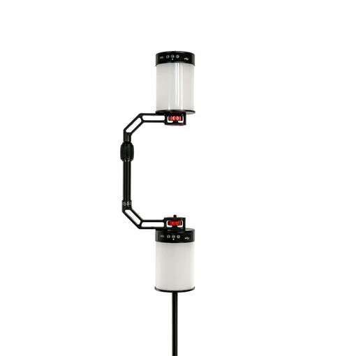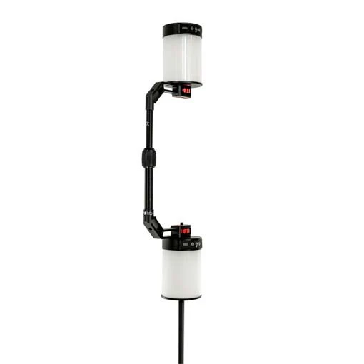 Éclairez vos images en 360° pour des scènes avec une parfaite lumière. Ce support est conçu pour pouvoir placer une caméra entre les deux lampes Halo. La caméra est soutenue par un support réglable. Les deux lumières peuvent être réglées indépendamment. Le support est lisse et mince pour avoir une empreinte visible minimale sur la prise de vue à 360°.