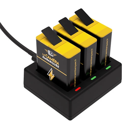 Triplez l’autonomie de votre GoPro HERO12, HERO11, HERO10, HERO9 grâce au triple chargeur et aux 3 batteries Premium LCE. Rechargez les 3 batteries simultanément. Pas de risque de surcharge ou surchauffe et une gestion de la recharge individuelle.