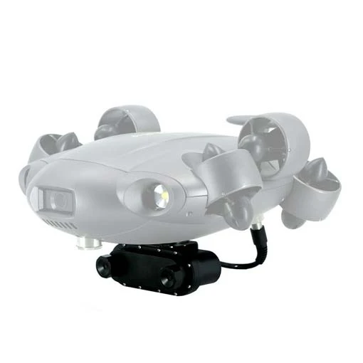Le mesureur laser Qysea permet de mesurer la taille des objets sous l’eau. Compatible avec le ROV Fifish V6 expert, il se fixe sous le châssis et permet de mesurer avec précision la taille des objets, des fissures sur des coques de bateaux, des poissons… Le laser dispose d’une longueur d’onde de 650nm (rouge) et fonctionne jusqu’à 100m de profondeur.