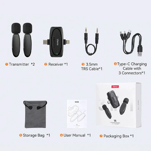 Le microphone sans fil 3en1 Ulanzi V6 est composé de deux émetteurs et d’un récepteur, compacts et légers (seulement 8 !). Ce microphone V6 vous permettra d’obtenir un son cristallin pour vos vidéos. Parfait les interviews, les streamings, vlogs et podcasts, ce microphone Lavalier 3en1 est facile d’utilisation. Les émetteurs se connectent automatiquement au récepteur sans que vous ayez besoin de passer par une application ou par le Bluetooth. Vous pourrez de plus le fixer sur vos vêtements. Ce microphone Ulanzi bénéficie d’une portée de transmission de 50 mètres max. avec une autonomie d’environ 6 heures.