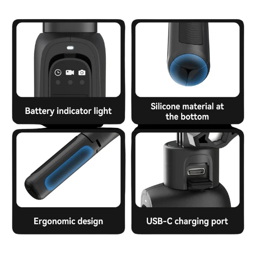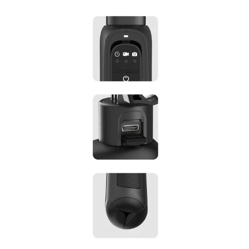 Équipée d’une batterie puissante de 5000 mAh, cette perche dispose d’une autonomie d’environ 6 heures en enregistrement 4K à 30 ips. Son temps de charge est rapide, avec seulement 2,5 heures nécessaires via son port USB Type-C. Avec ses diverses puissances d’entrée et de sortie (5V/2A, 9V/1,5A, 12V/1A), cette mini perche s’adapte à divers environnements de charge pour un usage facilité. Enfin, elle possède une télécommande Bluetooth détachable. Cette dernière permet une connexion sans fil jusqu’à 10 mètres de portée, facilitant les photos et les vidéos à distance.