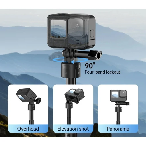 La mini perche à selfie Telesin est l’accessoire parfait pour capturer vos aventures avec style et précision. Polyvalent, il peut s’utiliser comme perche à selfie ou comme trépied court. Mesurant 25,7 cm en position rétractée et s’étendant jusqu’à 45 cm, cette perche est compacte et se glisse facilement dans un sac ou dans une poche, idéal pour les voyages. Compatible avec les modèles GoPro HERO13/12/11/10/9/MAX, cette perche dispose d’un insert type GoPro. Elle offre également une rotation à 360°, permettant des angles de prise de vue variés.