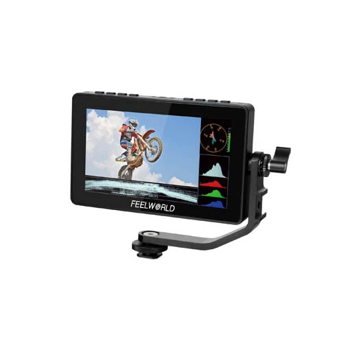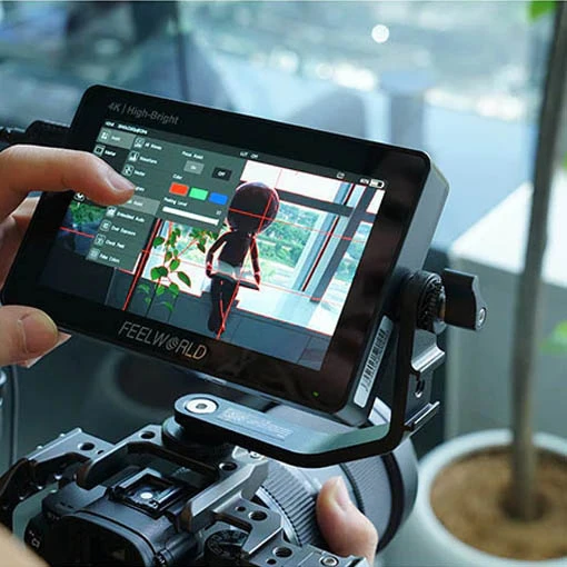 Ce moniteur Feelworld F5 ProX s’installe sur votre caméra ou appareil photo et vous offre un retour vidéo jusqu’en Full HD 1920 x 1080. Il prend en charge les LUT 3D vers Rec 709. Le moniteur est doté d’un écran tactile IPS 5.5″ avec une gamme de couleurs de 16.7M (8 bits) et une luminosité de 1600nit, idéale pour les environnements très éclairés. Le F5 ProX offre la possibilité de zoomer de x2 à x16 pour une meilleure précision. Il dispose d’une multitude de fonctionnalités comme un histogramme, pixel to pixel, nine grid, etc. Le moniteur fournit une sortie d’alimentation auxiliaire capable d’alimenter votre appareil photo.