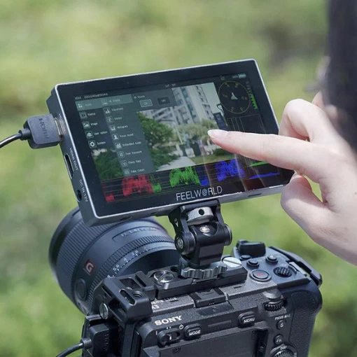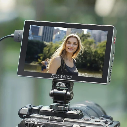 Le Feelworld P6X est le moniteur idéal pour les vidéastes professionnels en quête de performance. Il est doté d’un écran tactile Full HD IPS de 5,5″ avec une résolution de 1920 x 1080p et une luminosité de 1000 nits. Il garantit ainsi une visibilité optimale, même en plein soleil : idéal pour les tournages extérieurs ! Le P6X bénéficie d’une entrée et d’une sortie HDMI et assure une résolution vidéo jusqu’en 4K 60 ips, pour offrir une qualité d’image exceptionnelle et une transmission rapide sans latence. De plus, il supporte une large gamme de formats vidéos et est compatible avec la plupart des caméras professionnelles.