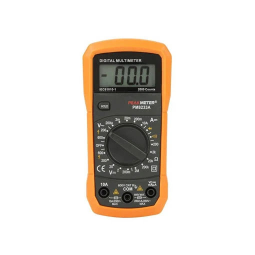 Le multimètre numérique Peak-Meter PM8233A AC/DC vous permettra de mesurer avec précision à l’aide des deux sondes fournies différentes mesures électriques dont la tension d’un courant continu ou alternatif, la résistance et l’intensité. Grâce à ce multimètre, vous pourrez vérifier le bon fonctionnement de vos batteries, chargeurs, drones et autres appareils électriques. Ce multimètre est aussi très utile pour détecter les pannes et leurs provenances, effectuer des tests de continuité et de diode.