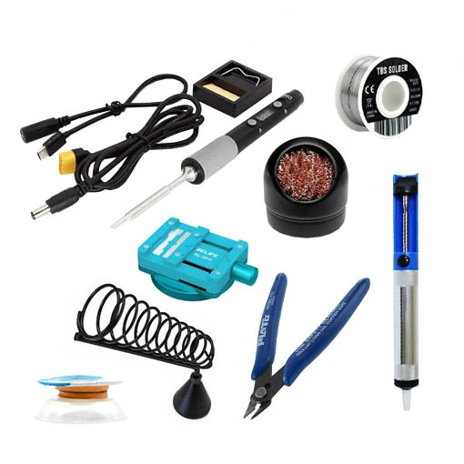La bobine d’étain et la pince coupante seront de plus idéales pour souder vos pièces FPV avec précision. Grâce au support magnétique, gardez à porter de main votre fer à souder ! Le mini étau à souder rotatif à 360° facilitera votre travail de soudure. Il maintiendra fermement vos composants électroniques et vous permettra d’ajuster le positionnement de votre composant pour plus d’efficacité. Le nettoyeur de panne vous assurera une panne toujours propre, prête à souder. À l’aide de la tresse et de la pompe à dessouder, enlevez les excès de soudures, réparez vos pièces électroniques en toute simplicité !