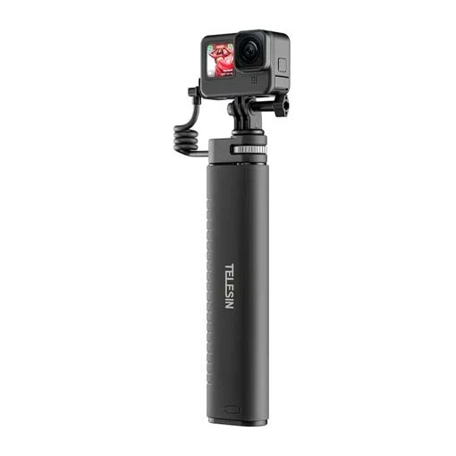 La perche à selfie rechargeable Telesin permet de charger votre GoPro ou votre smartphone pendant que vous filmez. La perche à selfie intègre une batterie à charge rapide pour votre caméra afin d’obtenir une plus longue autonomie. Le câble USB Type C pourra être directement branché à votre caméra ou téléphone compatible. Sa capacité de 10 000mAh prend en charge la charge rapide de 18W. La perche télescopique mesure entre 21cm à 90cm. Avec sa certification IP52, elle peut résister aux éclaboussures et la poussière.