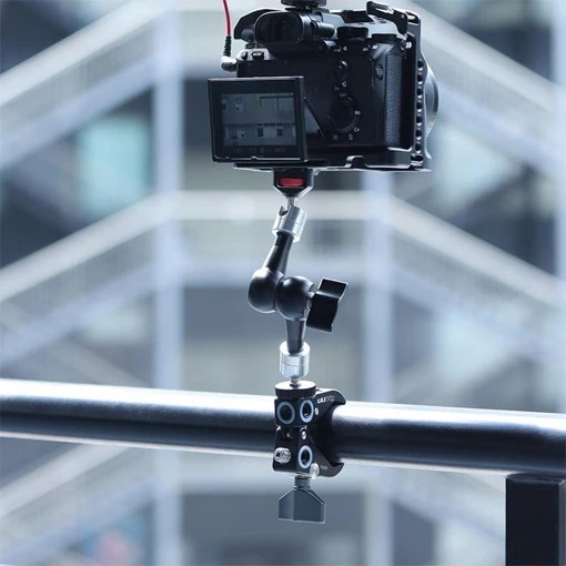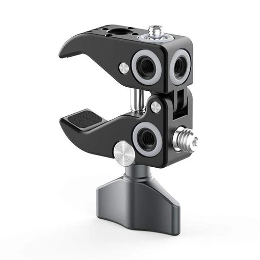 La pince Ulanzi Super Clamp R060 vous permettra de venir vous fixer sur des tubes ou surfaces planes d’une taille comprise entre 14 et 43 mm. Fabriquée en alliage d’aluminium, la pince dispose de 2 inserts femelles 3/8 » dont un pour ARRI et 6 inserts femelles ¼ » ainsi que 1 vis double filetage ¼ » et idem en 3/8 » et fixation ARRI. La pince Ulanzi Super Clamp R060 est équipée de plaque de silicone antidérapante pour une meilleure préhension et stabilité. Papillon de serrage ergonomique.