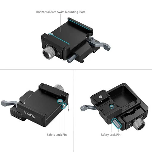 Installez cette plaque de montage Arca-Swiss SmallRig sur votre DJI RS 3 Mini. Elle permet de prendre en charge une multitude d’appareils tels que Sony FX3, Canon R5, FUJIFILM X-T5, etc. Elle permet également de basculer facilement et rapidement entre une prise de vue verticale et une prise de vue horizontale. Pour mettre en place votre boîtier, rien de plus simple : glissez-le par le côté ou par le haut et le tour est joué ! La plaque dispose de deux goupilles de sécurité afin de sécuriser l’appareil au maximum.