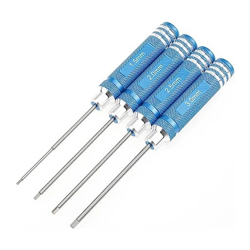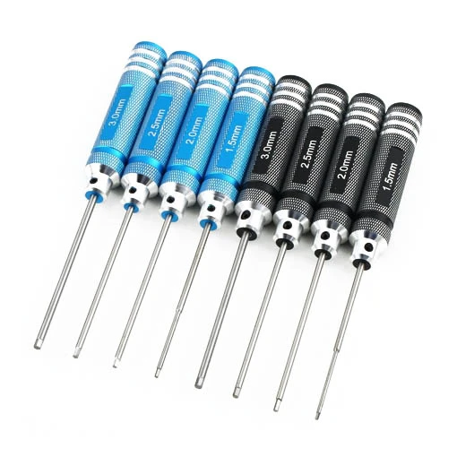 Ce set se compose de 4 tournevis à tête hexagonale 1.5mm, 2.0mm, 2.5mm et 3.0mm et à embouts démontables. Utilisez ces tournevis pour le bricolage et la réparation de votre drone FPV.