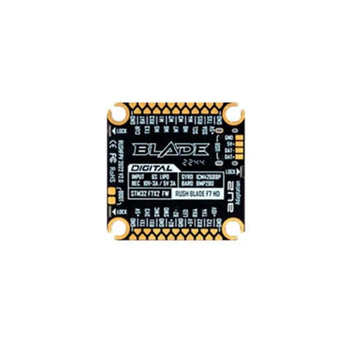 Le stack RUSHFPV Blade Digital F722 V2 50A Sport Edition assure de belles performances de vol. Elle se compose d’une carte de vol Blade Digital F722 V2 et d’un ESC 4en1 50A Sport Edition. La FC est dotée d’un processeur STM32F722RET6, d’un gyroscope ICM-42688-P, d’un double BEC (5V 3A, 10V 3A) et d’une Blackbox de 16 Mb. Elle est compatible avec les VTx numériques. L’ESC 4en1, quant à lui, peut supporter un ampérage continu de 50A et 60A en pic.