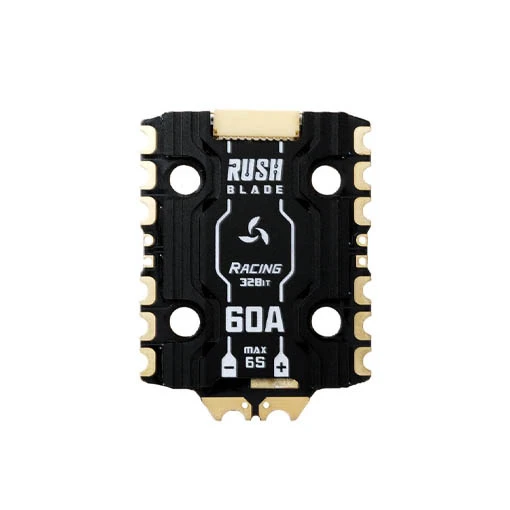 La stack RUSHFPV Blade F722 Mini 60A Racing V2 est composé d’une carte de vol Blade F722 V2 Mini DJI Digital et d’un ESC 4en1 Racing 60A 6S BL32. De dimensions de 29 x 29 x 6,8 mm avec un poids de seulement 5 g, la carte de vol RUSHFPV comprend un processeur STM32F722, un gyroscope MPU6000, une Blackbox de 16 Mb et un double BEC : 5 V, 2 A ; 10 V, 1,5 A. Elle est également équipée d’un adaptateur avec une prise USB-C.