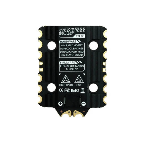 L’ESC, quant à lui, dispose d’un firmware BLHeli_32 et possède une fréquence PWM de 24 à 48 KHz. Il peut aussi supporter un ampérage continu de 60A et de 70A en rafale. Cette stack RUSHFPV est compatible avec les sets up FPV numériques. Elle présente également des trous de montage de 20 x 20 mm pour faciliter son installation sur votre drone. Vous pourrez l’alimenter avec une batterie LiPo de 3 à 6S (non fournie).