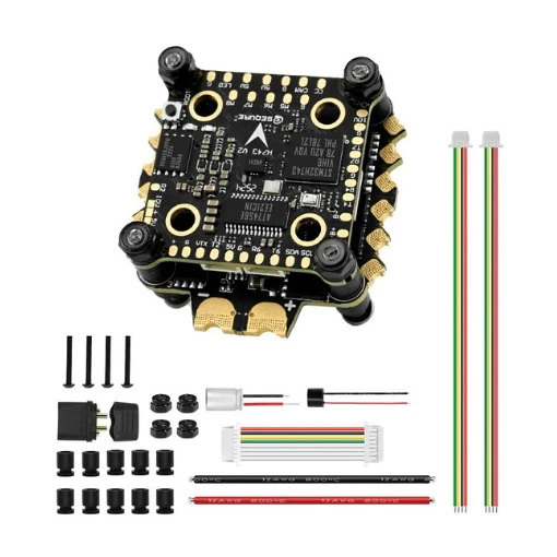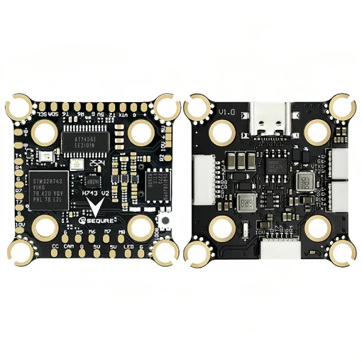 Cette stack Sequre s’adresse aux pilotes FPV souhaitant optimiser leur expérience de vol et améliorer leurs performances. Elle associe une carte de vol H743 V2 à un ESC E70 G2. La carte de vol H743 V2 est équipée d’un processeur STM32H743, d’un baromètre BMP280, d’un gyroscope ICM42688P, d’un OSD AT7456E et propose 6 UARTS. L’ESC E70 G2 peut, quant à lui, supporter un ampérage continu de 70 A, avec des pics allant jusqu’à 150 A pendant 10 secondes. De plus, il fonctionne avec un firmware AM32.