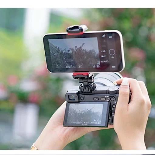 L’accessoire indispensable pour les vloggeurs qui souhaitent fixer leur téléphone sur un trépied, d’un appareil photo ou autres accessoires disposant d’une fixation Cold Shoe. Compatible avec les smartphones entre 6 et 9cm de largeur maximum. Il est robuste et permet d’améliorer votre setup photo et vidéo pour un retour vidéo/photo. 2 fixations Cold Shoe supplémentaires sur le coté de la fixation permettent de fixer des lampes ou autres accessoires. Un Pas de vis 1/4″ femelle sous le Cold Shoe.