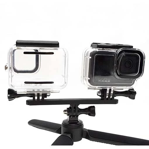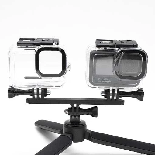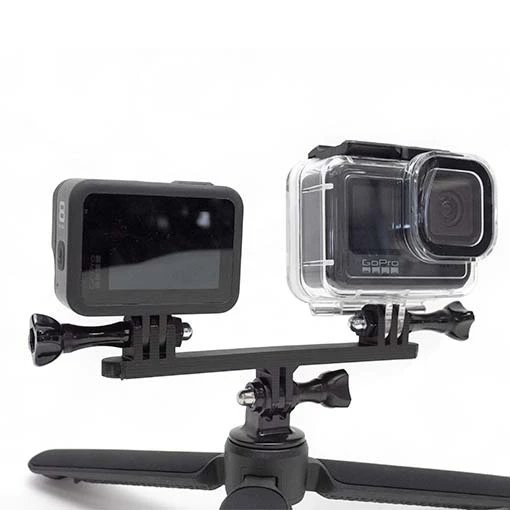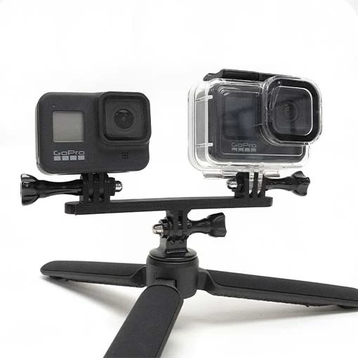 Réalisé en impression 3D, ce support Dual Mount XL sera en mesure d’accepter par exemple deux GoPro avec leurs caissons étanches respectifs pour plus de créativité (caméras et caissons, trépieds non fournis). Ce support Dual Mount XL sera également compatible avec une poignée ou une perche.