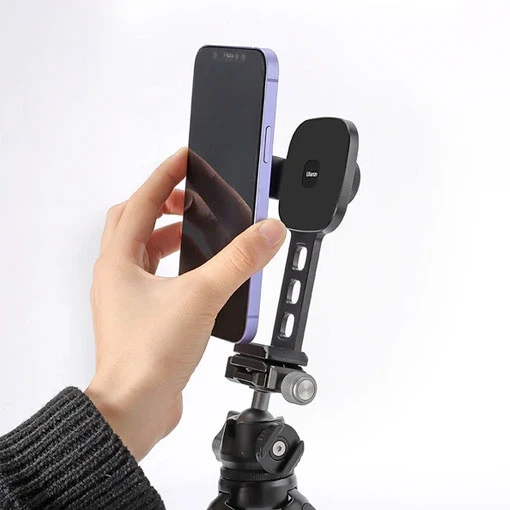 Fabriqué en alliage d’aluminium, le support de téléphone MagSafe Ulanzi ne pèse que 121 g. Doté d’un pas de vis 1/4’’ à sa base, ce support s’installera facilement sur un trépied, une perche à selfie ou tout autre accessoire pourvu d’une fixation 1/4’’. Vous pourrez installer ce support de téléphone MagSafe Ulanzi sur tout équipement pourvu d’une fixation Arca Swiss à dégagement rapide.