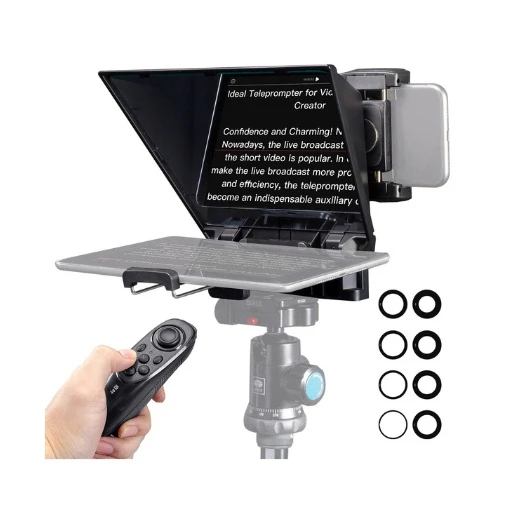 Le Feelworld TP2A est un téléprompteur compact et polyvalent conçu pour les créateurs de contenu, les journalistes et les professionnels du streaming. Il prend en charge les smartphones, tablettes jusqu’à 8 pouces et les appareils photo reflex et permet une lecture fluide du texte tout en conservant un contact visuel naturel avec l’objectif. Son large champ de vision s’adapte aux objectifs grand-angle. De plus, le TP2A est compatible avec des optiques de 49 à 77 mm grâce aux huit bagues d’adaptation fournies.